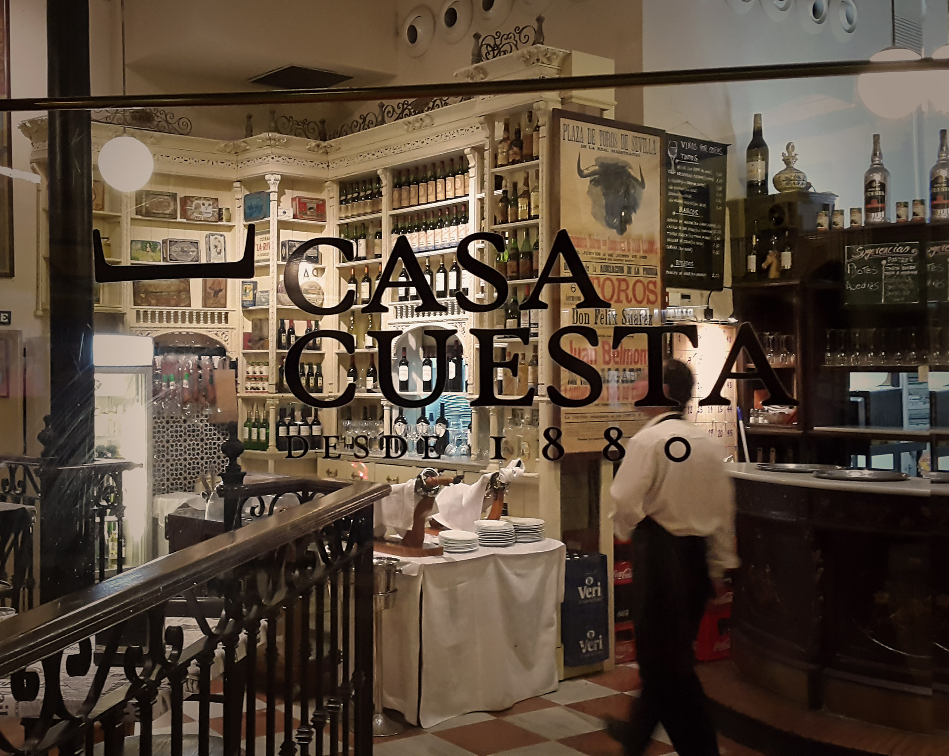 One of them is precisely Casa Cuesta attending customers since 1880. Casa Cuesta is an institution for the tapas culture, the ceramics tradition and the history of Sevilla. Casa Cuesta is one of the few existing bars in Sevilla that started serving in XIX century.